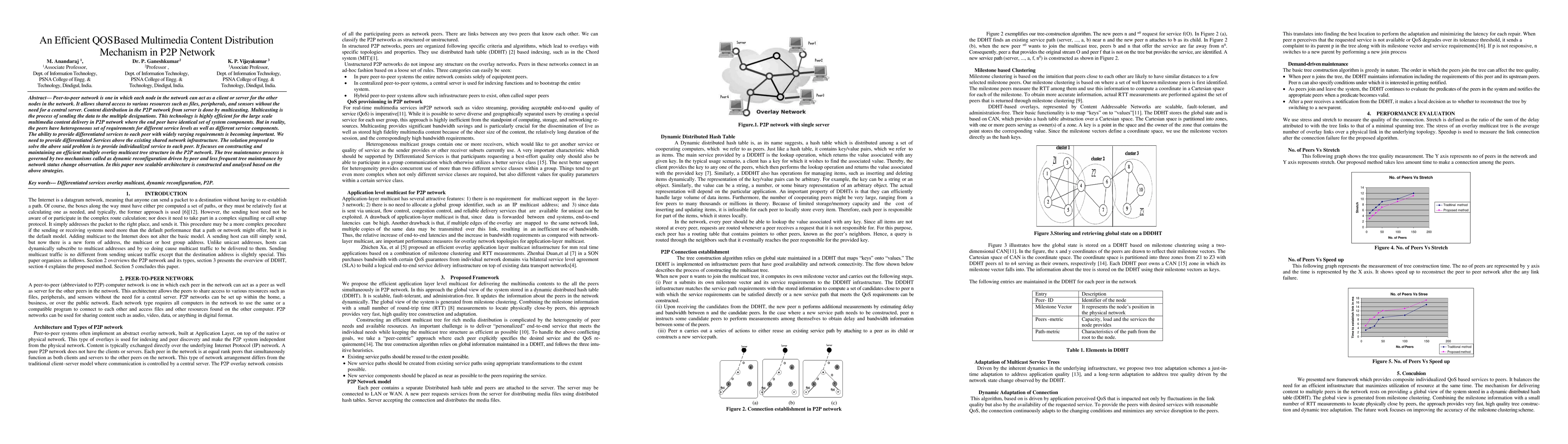 This paper proposes an efficient QoS-based mechanism for multimedia content distribution in P2P networks, utilizing multicast for large-scale delivery. It introduces a scalable architecture with dynamic reconfiguration and network status-driven tree maintenance to provide differentiated services to heterogeneous peers.
