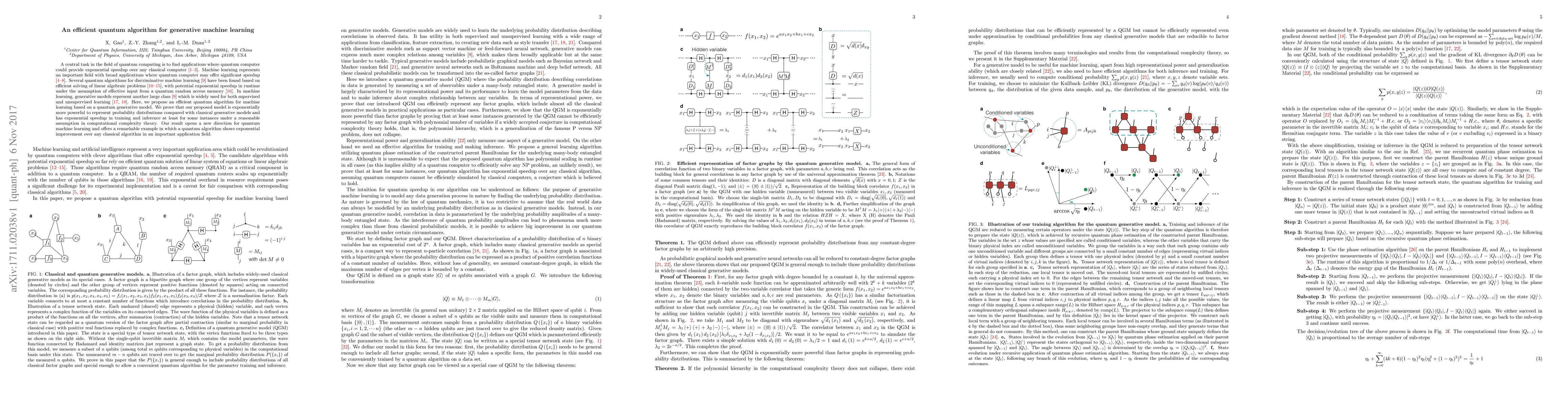 This paper proposes an efficient quantum algorithm for generative machine learning, demonstrating that quantum generative models can exponentially outperform classical models in representing probability distributions and provide significant speedup in training and inference under certain conditions. This marks a notable advancement in quantum machine learning.