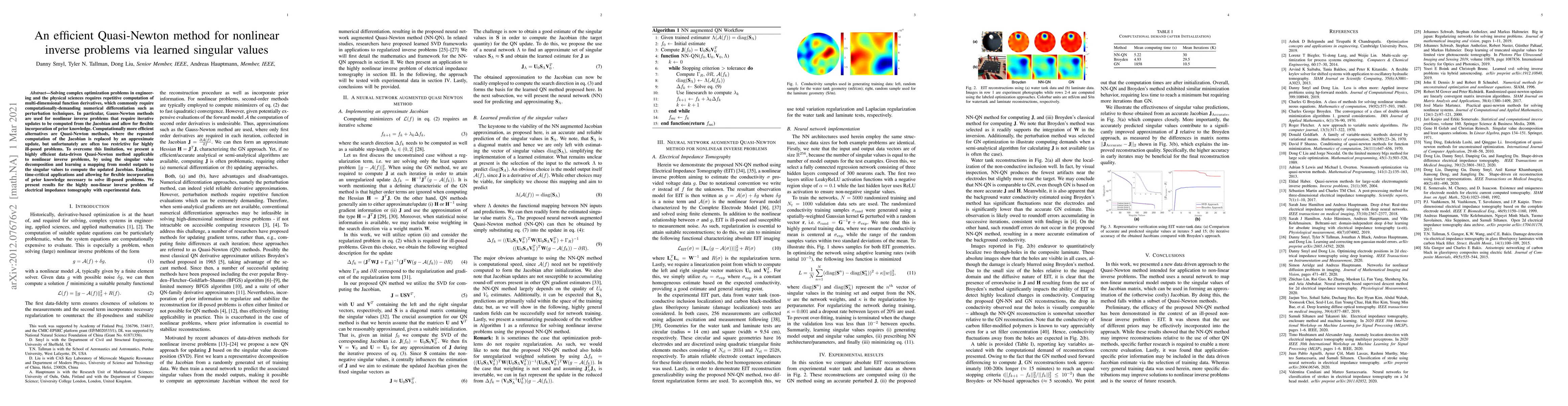 This paper proposes an efficient Quasi-Newton method for solving nonlinear inverse problems by leveraging learned singular values to approximate Jacobian updates, significantly reducing computational costs and enabling faster solutions for time-sensitive applications. The method demonstrates effectiveness in solving the non-linear inverse problem of electrical impedance tomography.