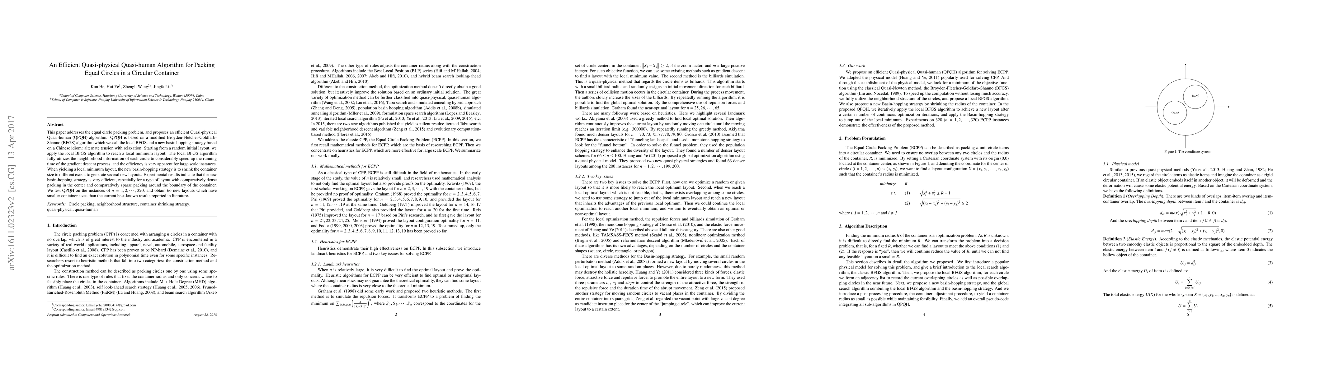 This paper introduces an efficient Quasi-physical Quasi-human algorithm for packing equal circles in a circular container, achieving 66 new layouts with smaller container sizes than existing results.