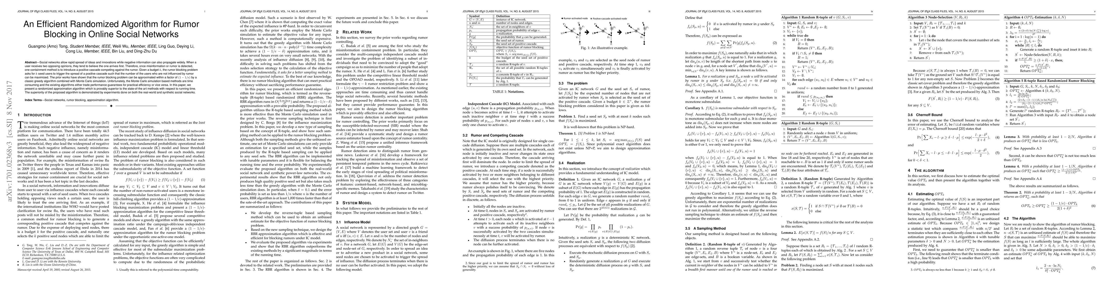 This paper proposes a randomized algorithm for efficiently blocking rumor spread in online social networks, achieving a $(1-1/e-\delta)$-approximation within an expected runtime of $O(\frac{km\ln n}{\delta^2})$. The new method significantly outperforms existing Monte Carlo-based approaches, balancing both performance guarantees and practical efficiency.