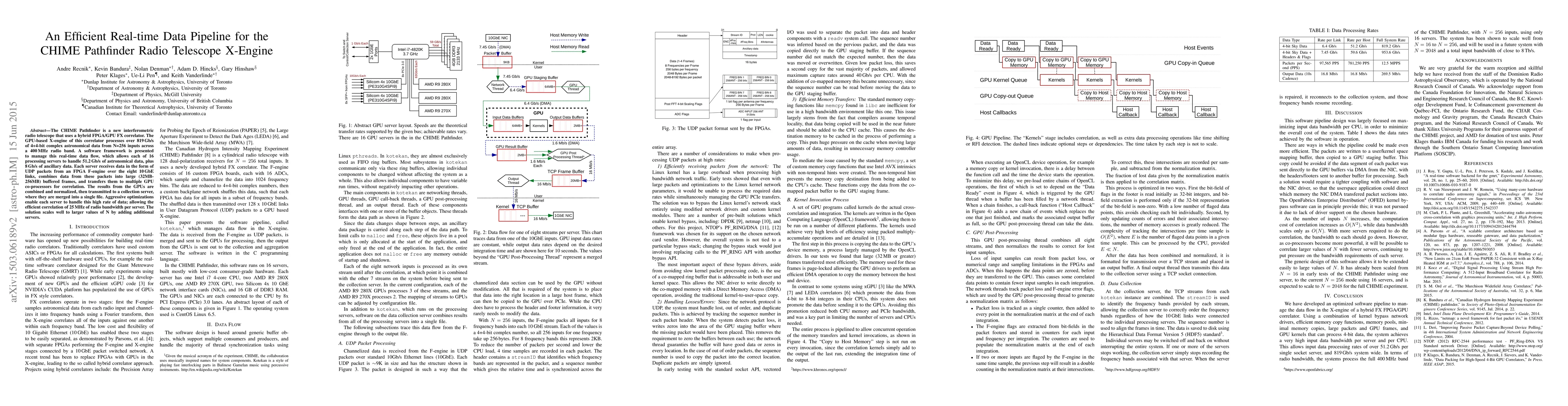 This paper presents a real-time data pipeline for the CHIME Pathfinder Radio Telescope's X-engine, which processes 819 Gb/s of complex astronomical data using a hybrid FPGA/GPU correlator. The software framework efficiently manages data flow across 16 processing servers, enabling each to handle 51.2 Gb/s of data and scaling to larger datasets by adding more servers.