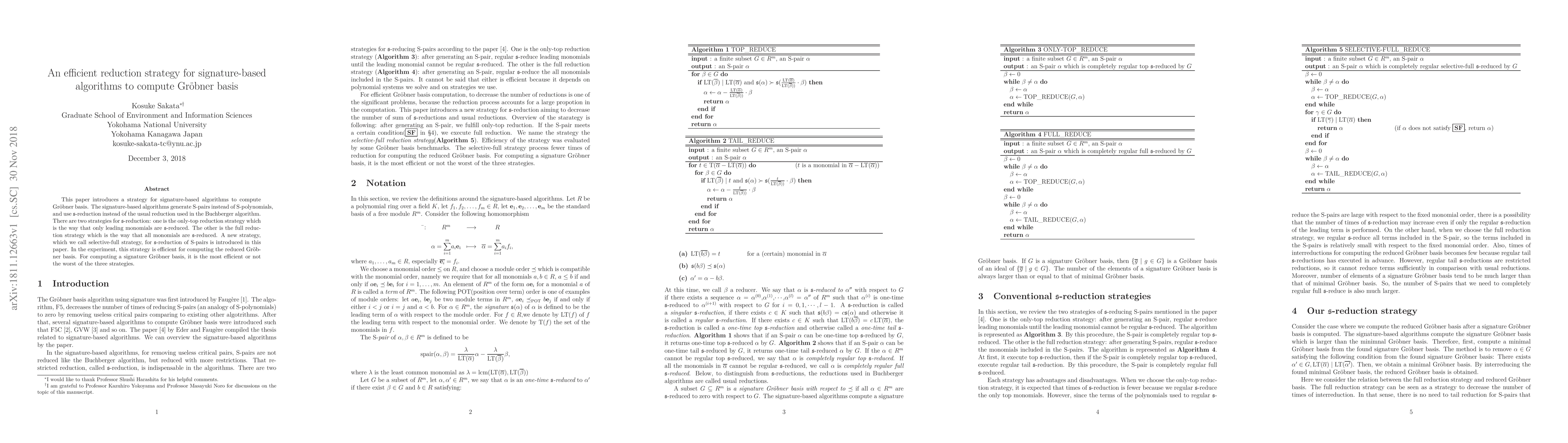 This paper proposes a selective-full strategy for signature-based algorithms to compute Groebner basis, which efficiently reduces S-pairs using s-reduction. Experimental results show it is among the most efficient methods compared to only-top and full reduction strategies.