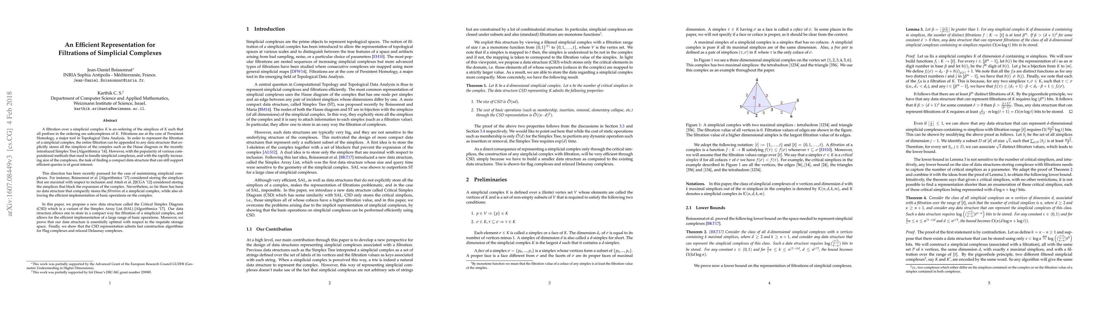 This paper introduces the Critical Simplex Diagram (CSD), a compact data structure for efficiently representing the filtration of simplicial complexes, supporting various operations with optimal storage. The CSD is a variant of the Simplex Array List and enables fast construction for Flag and relaxed Delaunay complexes.