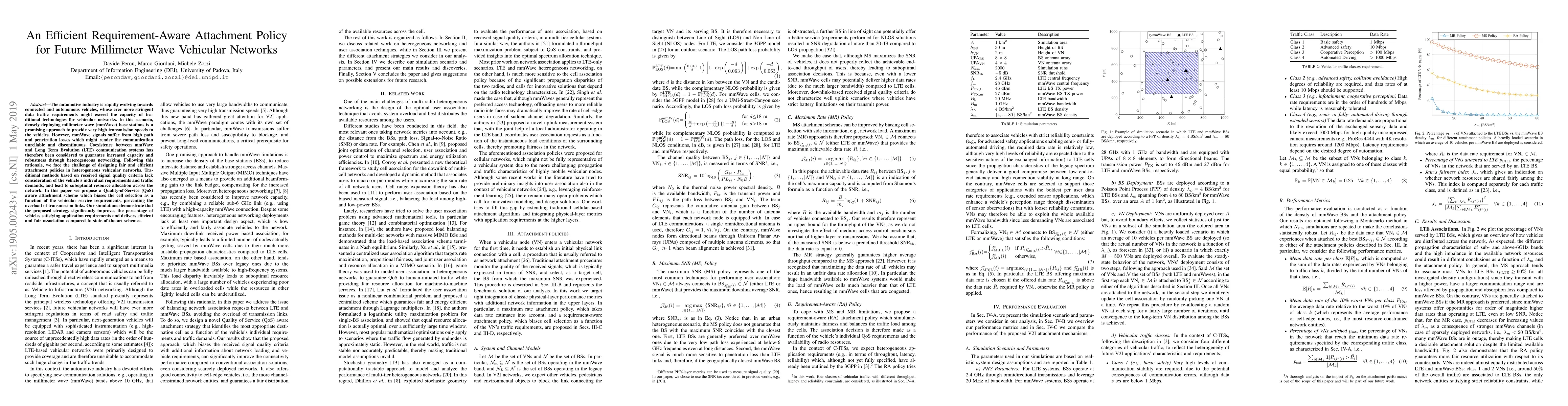 The automotive industry is rapidly evolving towards connected and autonomous vehicles, whose ever more stringent data traffic requirements might exceed the capacity of traditional technologies for vehicular networks. In this scenario, densely deploying millimeter wave (mmWave) base stations is a promising approach to provide very high transmission speeds to the vehicles. However, mmWave signals suffer from high path and penetration losses which might render the communication unreliable and discontinuous. Coexistence between mmWave and Long Term Evolution (LTE) communication systems has therefore been considered to guarantee increased capacity and robustness through heterogeneous networking. Following this rationale, we face the challenge of designing fair and efficient attachment policies in heterogeneous vehicular networks. Traditional methods based on received signal quality criteria lack consideration of the vehicle's individual requirements and traffic demands, and lead to suboptimal resource allocation across the network. In this paper we propose a Quality-of-Service (QoS) aware attachment scheme which biases the cell selection as a function of the vehicular service requirements, preventing the overload of transmission links. Our simulations demonstrate that the proposed strategy significantly improves the percentage of vehicles satisfying application requirements and delivers efficient and fair association compared to state-of-the-art schemes.