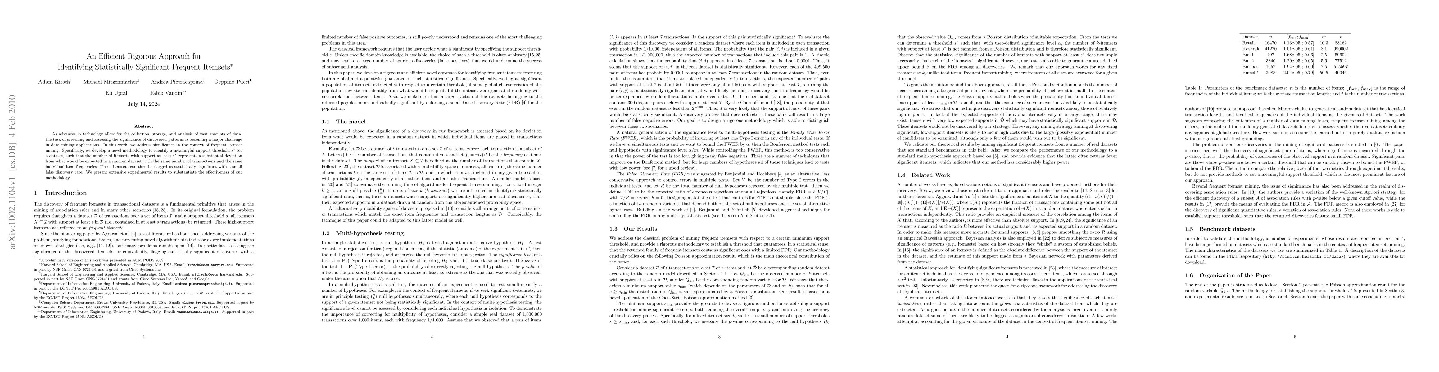 This paper develops a method to identify statistically significant frequent itemsets in data mining applications, enabling the detection of substantial deviations from random datasets. The approach provides a meaningful support threshold with a small false discovery rate.