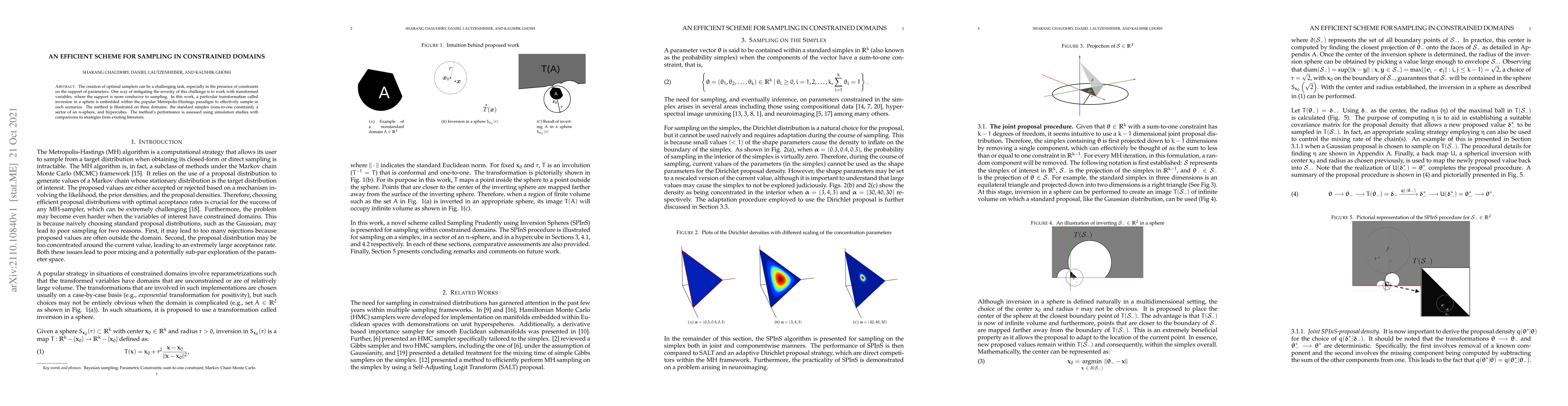 Researchers developed a new method to efficiently sample data in constrained domains using an inversion in a sphere transformation within the Metropolis-Hastings algorithm. The approach outperforms existing methods in simulation studies for various constraints, including sum-to-one, n-sphere sector, and hypercube scenarios.