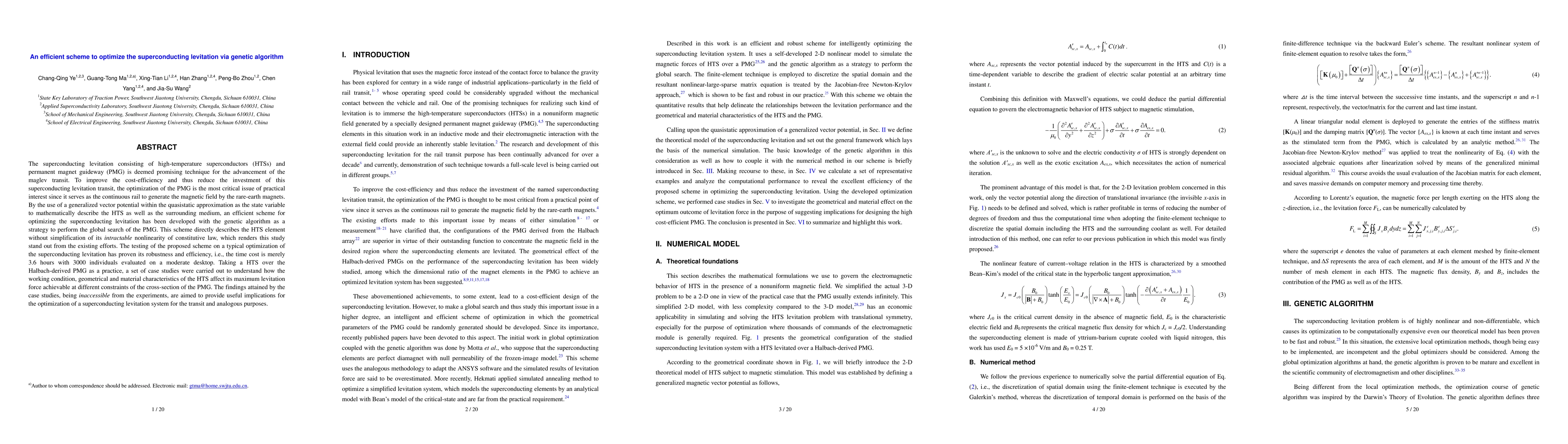 This paper proposes an efficient genetic algorithm-based scheme to optimize superconducting levitation in maglev transit systems by focusing on the permanent magnet guideway. The method directly handles the HTS's complex nonlinearities, offering robust and efficient optimization with minimal computational cost.