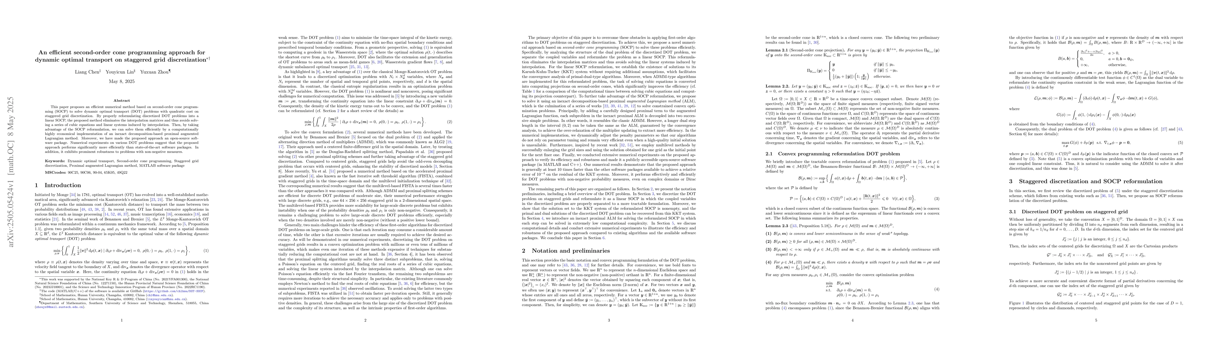 A new method using second-order cone programming efficiently solves dynamic optimal transport problems on staggered grid discretization, outperforming state-of-the-art software packages in efficiency and robustness.