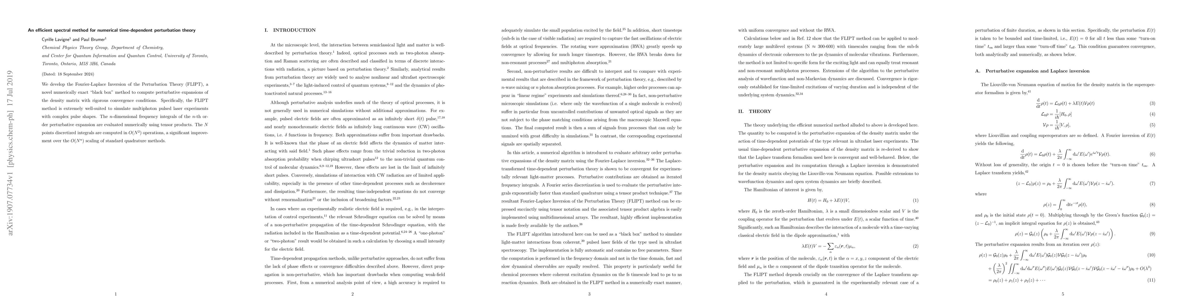 We develop the Fourier-Laplace Inversion of the Perturbation Theory (FLIPT), a novel numerically exact "black box" method to compute perturbative expansions of the density matrix with rigorous convergence conditions. Specifically, the FLIPT method is extremely well-suited to simulate multiphoton pulsed laser experiments with complex pulse shapes. The $n$-dimensional frequency integrals of the $n$-th order perturbative expansion are evaluated numerically using tensor products. The $N$ points discretized integrals are computed in $O(N^2)$ operations, a significant improvement over the $O(N^n)$ scaling of standard quadrature methods.