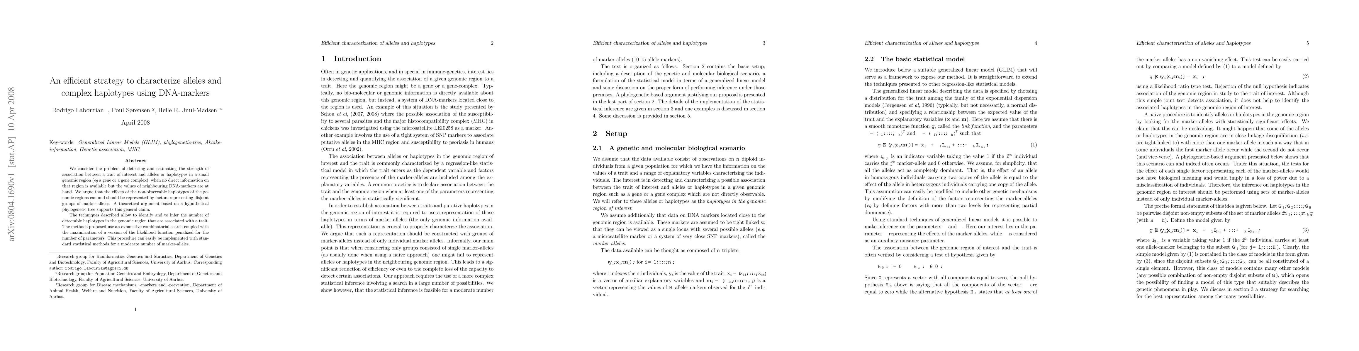 This research proposes a strategy to identify and estimate the impact of unobserved genomic alleles or haplotypes linked to a trait, using neighboring DNA-marker values. The method employs a combinatorial search and penalized likelihood maximization, enabling the detection of associated haplotypes for a moderate number of marker-alleles.