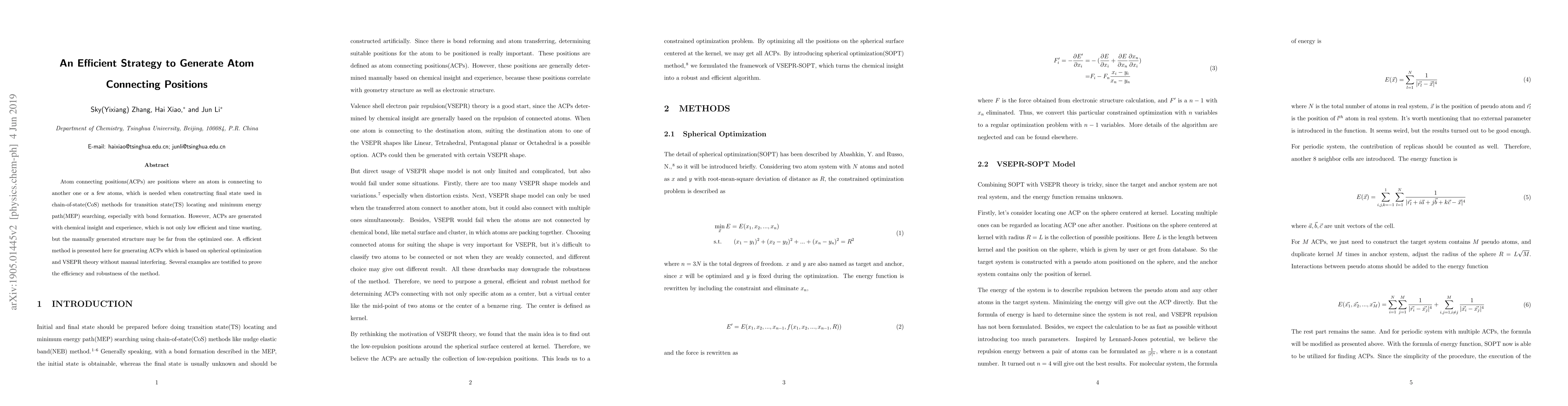 This paper presents an efficient method for generating atom connecting positions (ACPs) using spherical optimization and VSEPR theory, eliminating the need for manual intervention. The proposed method demonstrates efficiency and robustness through several tested examples.