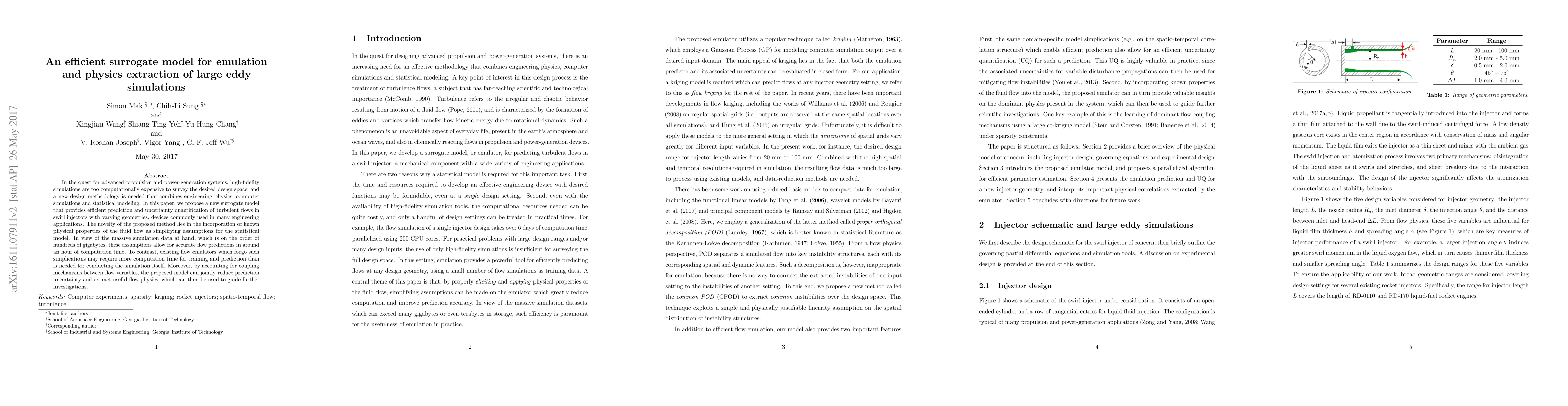 A new surrogate model efficiently predicts turbulent flows in swirl injectors with varying geometries, saving up to 99% of computation time compared to existing emulators. The model also extracts useful flow physics, enabling further investigations.