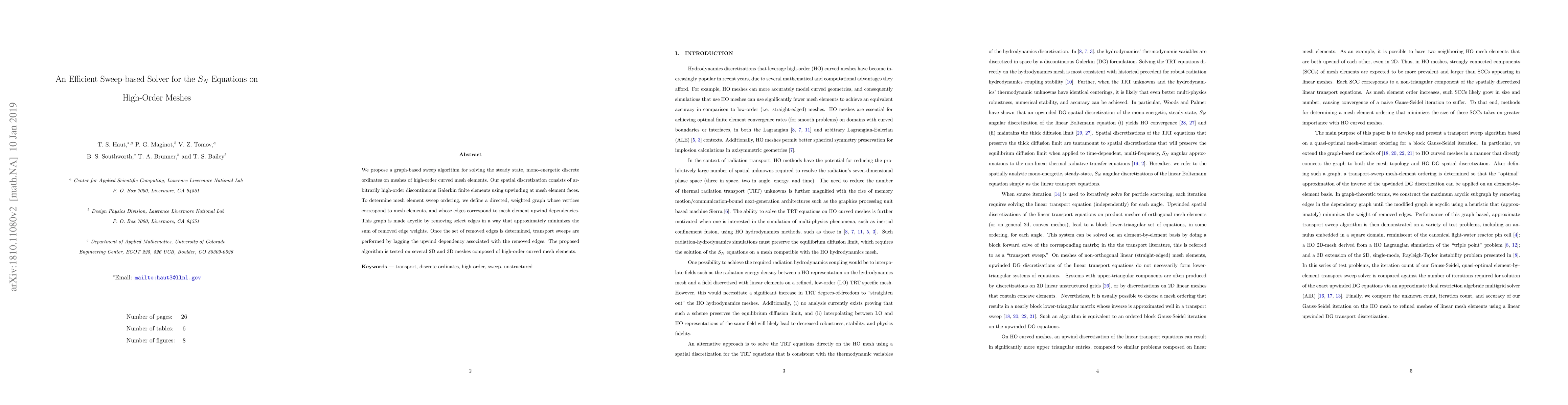 We propose a graph-based sweep algorithm for solving the steady state, mono-energetic discrete ordinates on meshes of high-order curved mesh elements. Our spatial discretization consists of arbitrarily high-order discontinuous Galerkin finite elements using upwinding at mesh element faces. To determine mesh element sweep ordering, we define a directed, weighted graph whose vertices correspond to mesh elements, and whose edges correspond to mesh element upwind dependencies. This graph is made acyclic by removing select edges in a way that approximately minimizes the sum of removed edge weights. Once the set of removed edges is determined, transport sweeps are performed by lagging the upwind dependency associated with the removed edges. The proposed algorithm is tested on several 2D and 3D meshes composed of high-order curved mesh elements.