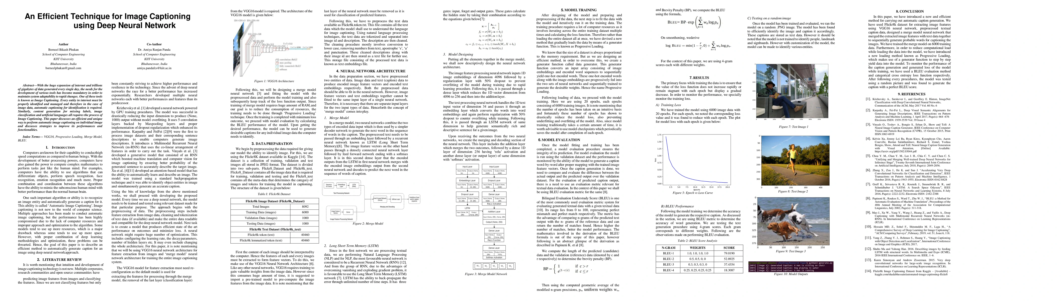 With the huge expansion of internet and trillions of gigabytes of data generated every single day, the needs for the development of various tools has become mandatory in order to maintain system adaptability to rapid changes. One of these tools is known as Image Captioning. Every entity in internet must be properly identified and managed and therefore in the case of image data, automatic captioning for identification is required. Similarly, content generation for missing labels, image classification and artificial languages all requires the process of Image Captioning. This paper discusses an efficient and unique way to perform automatic image captioning on individual image and discusses strategies to improve its performances and functionalities.