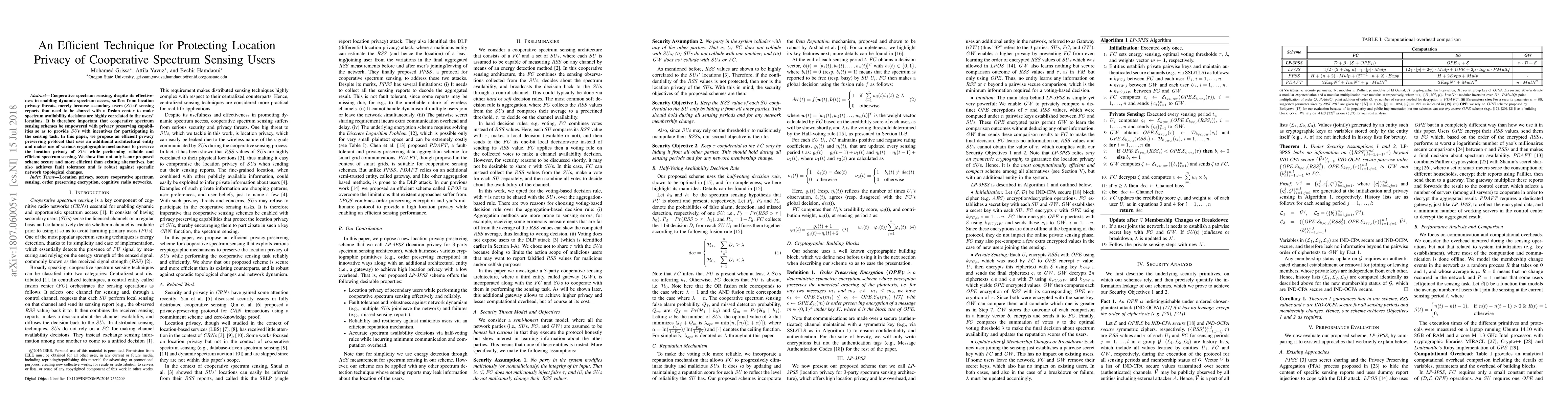 This paper proposes an efficient privacy-preserving protocol for cooperative spectrum sensing that employs cryptographic techniques and an additional architectural entity to protect location privacy of secondary users. The scheme is shown to be secure, more efficient, fault-tolerant, and robust against network changes compared to existing methods.