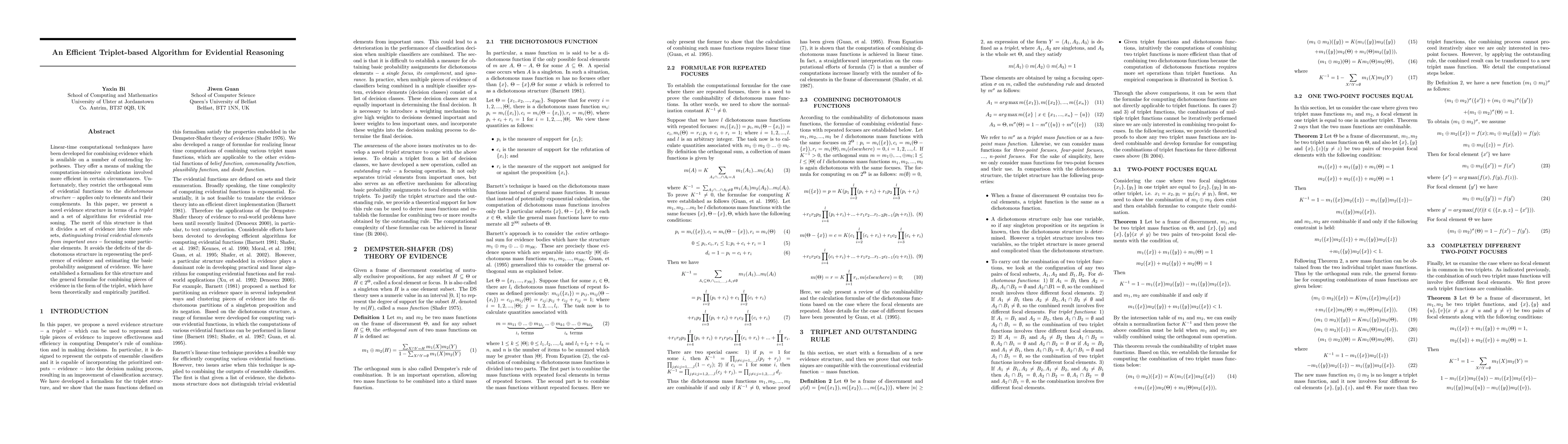 This paper introduces a novel triplet-based algorithm for efficient evidential reasoning, addressing the limitations of dichotomous structures. It divides evidence into three subsets to better represent evidence preference and estimate basic probability assignments, offering a more nuanced approach to evidence combination.
