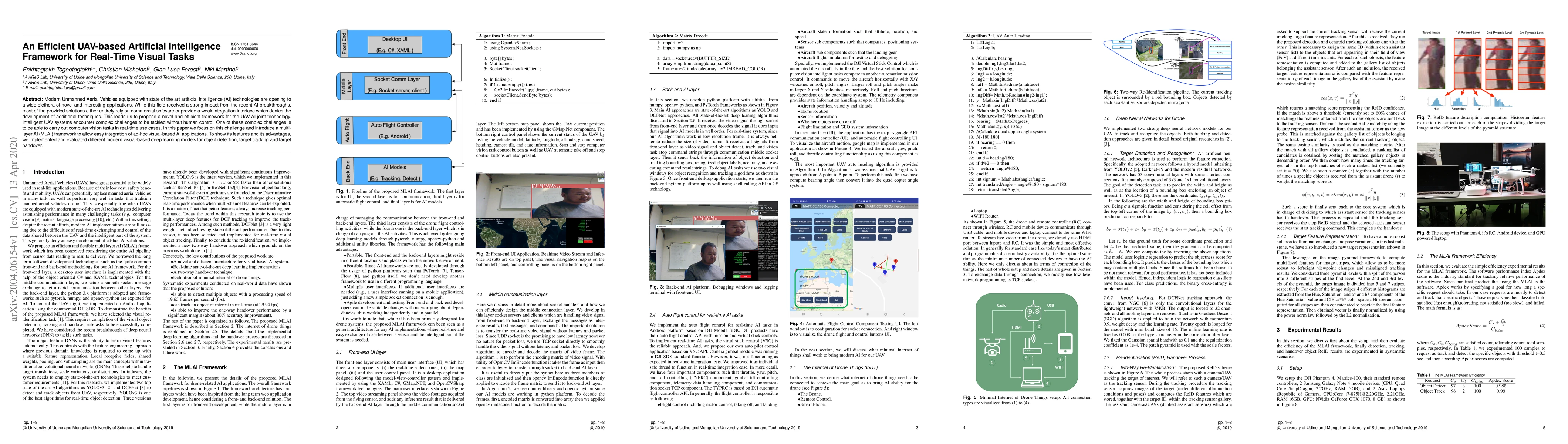 Modern Unmanned Aerial Vehicles equipped with state of the art artificial intelligence (AI) technologies are opening to a wide plethora of novel and interesting applications. While this field received a strong impact from the recent AI breakthroughs, most of the provided solutions either entirely rely on commercial software or provide a weak integration interface which denies the development of additional techniques. This leads us to propose a novel and efficient framework for the UAV-AI joint technology. Intelligent UAV systems encounter complex challenges to be tackled without human control. One of these complex challenges is to be able to carry out computer vision tasks in real-time use cases. In this paper we focus on this challenge and introduce a multi-layer AI (MLAI) framework to allow easy integration of ad-hoc visual-based AI applications. To show its features and its advantages, we implemented and evaluated different modern visual-based deep learning models for object detection, target tracking and target handover.