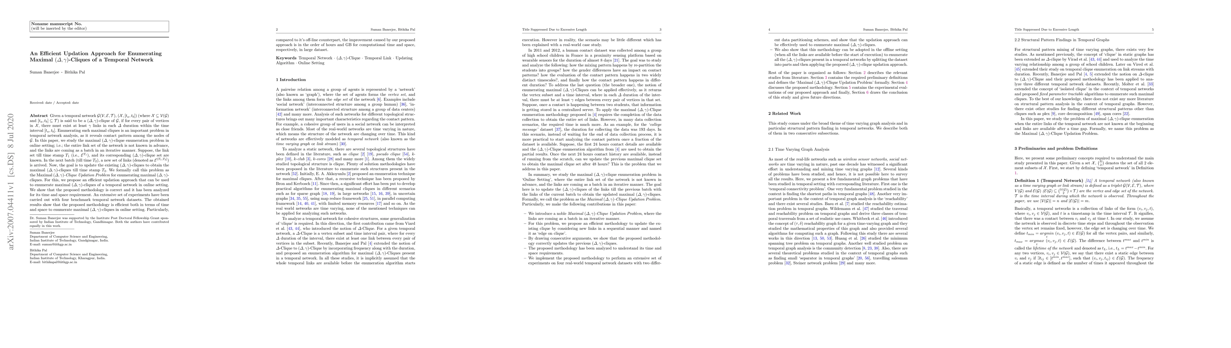 This paper proposes an efficient approach to enumerate maximal cliques in a temporal network, which is useful for understanding contact patterns among nodes. It presents a method to update the clique enumeration online with new links arriving iteratively.