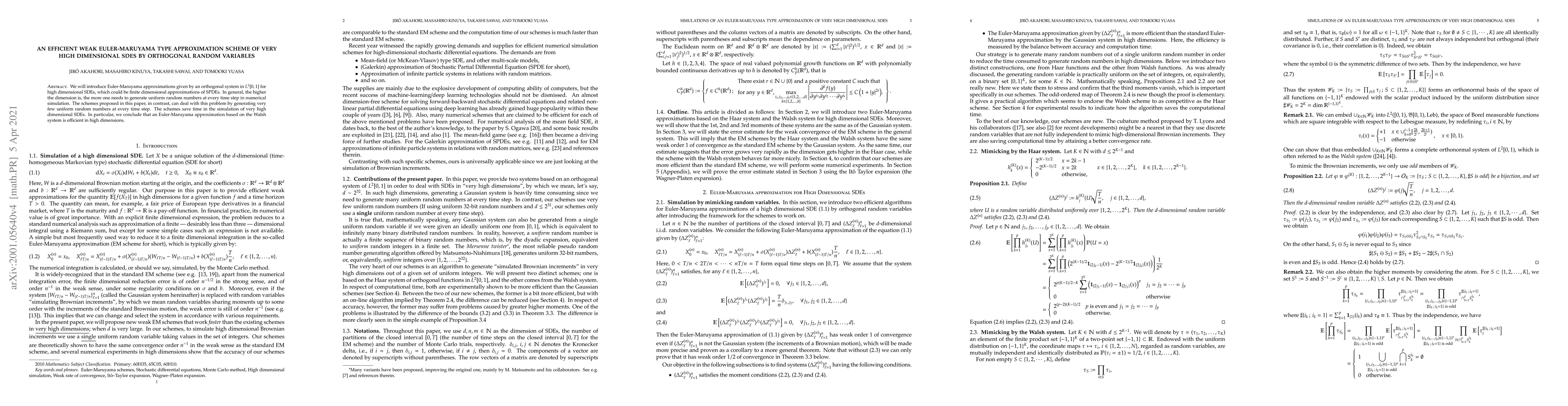 We will introduce Euler-Maruyama approximations given by an orthogonal system in $L^{2}[0,1]$ for high dimensional SDEs, which could be finite dimensional approximations of SPDEs. In general, the higher the dimension is, the more one needs to generate uniform random numbers at every time step in numerical simulation. The schemes proposed in this paper, in contrast, can deal with this problem by generating very few uniform random numbers at every time step. The schemes save time in the simulation of very high dimensional SDEs. In particular, we conclude that an Euler-Maruyama approximation based on the Walsh system is efficient in high dimensions.
