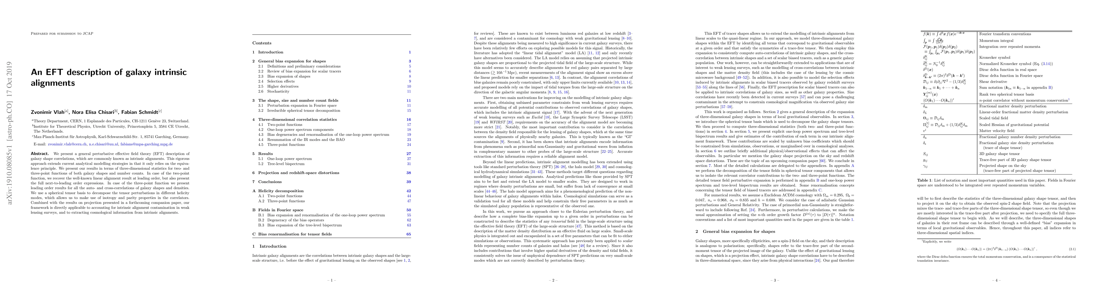 The paper presents a novel EFT description of galaxy intrinsic alignments, utilizing a spherical tensor basis to decompose tensor perturbations into different helicity modes, making use of isotropy and parity properties in the correlators.