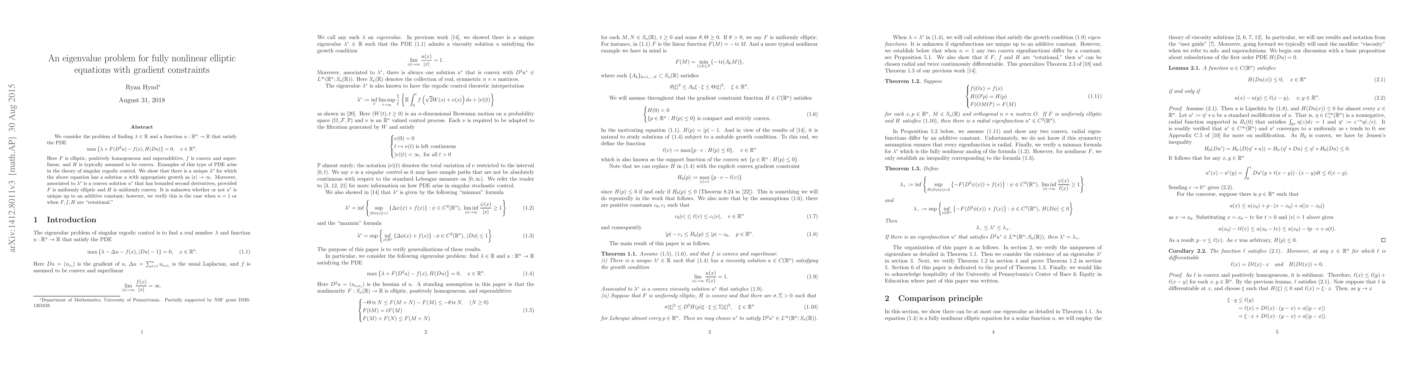 We consider the problem of finding $\lambda\in \mathbb{R}$ and a function $u:\mathbb{R}^n\rightarrow\mathbb{R}$ that satisfy the PDE $$ \max\left\{\lambda + F(D^2u) -f(x),H(Du)\right\}=0, \quad x\in \mathbb{R}^n. $$ Here $F$ is elliptic, positively homogeneous and superadditive, $f$ is convex and superlinear, and $H$ is typically assumed to be convex. Examples of this type of PDE arise in the theory of singular ergodic control. We show that there is a unique $\lambda^*$ for which the above equation has a solution $u$ with appropriate growth as $|x|\rightarrow \infty$. Moreover, associated to $\lambda^*$ is a convex solution $u^*$ that has bounded second derivatives, provided $F$ is uniformly elliptic and $H$ is uniformly convex. It is unknown whether or not $u^*$ is unique up to an additive constant; however, we verify this is the case when $n=1$ or when $F, f,H$ are "rotational."