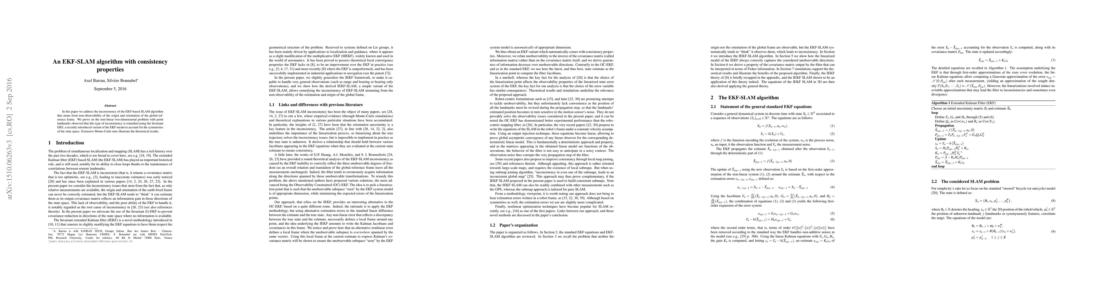 This paper proposes an Invariant Extended Kalman Filter (IEKF)-based SLAM algorithm to address inconsistencies in traditional EKF-SLAM due to non-observability issues. The IEKF variant accounts for state space symmetries, and Monte-Carlo simulations confirm the improved consistency of the proposed method.
