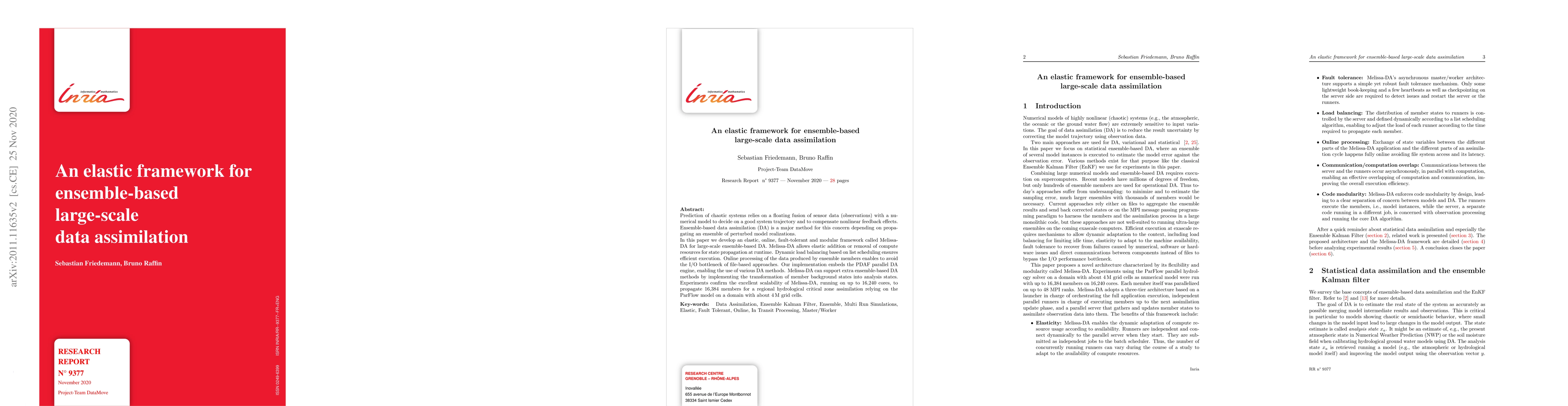 This paper introduces Melissa-DA, an elastic, online, fault-tolerant framework for large-scale ensemble-based data assimilation, enabling dynamic resource allocation and efficient execution through dynamic load balancing. Experiments demonstrate its scalability, successfully running on up to 16,240 cores for a regional hydrological model.