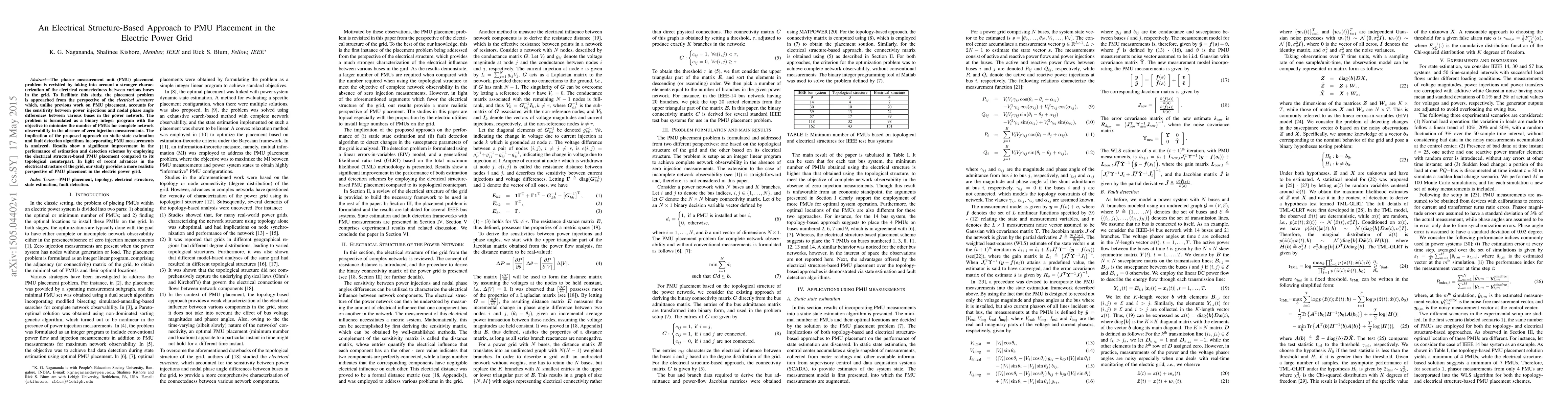 This paper proposes an electrical structure-based approach for optimal phasor measurement unit (PMU) placement in power grids, emphasizing sensitivity between power injections and nodal phase angles. The method significantly improves state estimation and fault detection compared to traditional topological approaches.