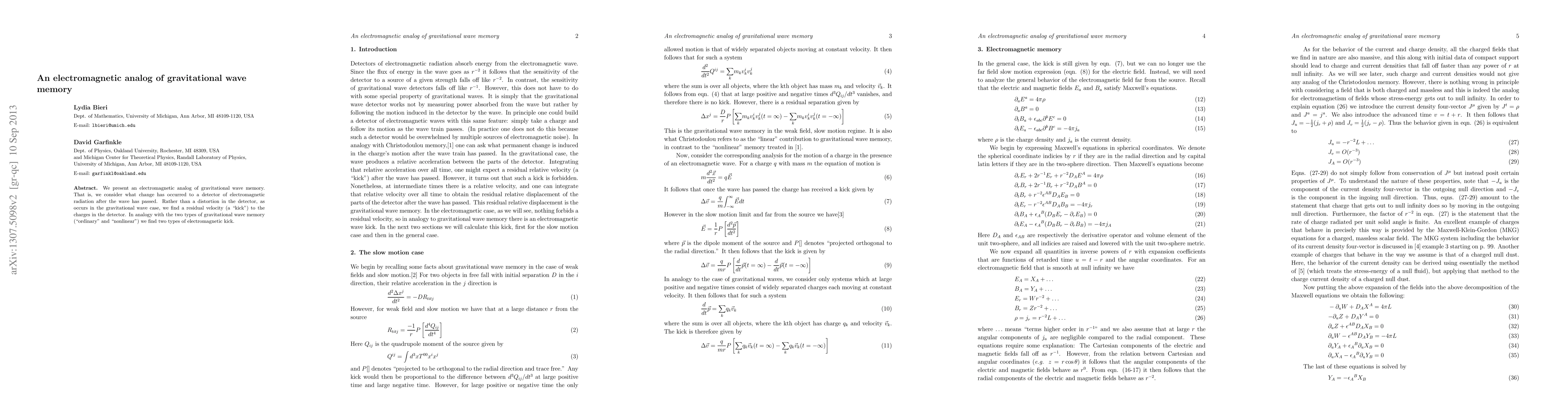 This paper explores an electromagnetic analog of gravitational wave memory, revealing a residual "kick" in detector charges after electromagnetic waves pass, analogous to the two types of gravitational wave memory: "ordinary" and "nonlinear."