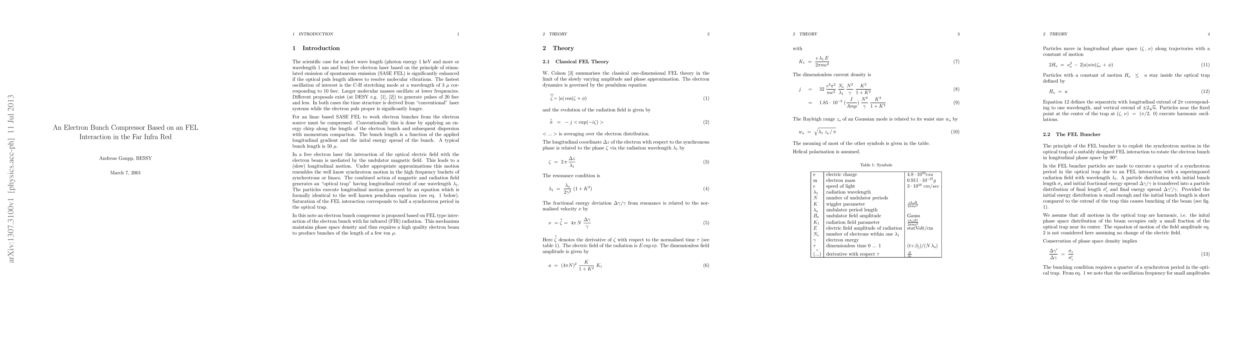 Summary: This paper proposes an electron bunch compressor utilizing an FEL interaction with far infrared radiation to maintain phase space density, requiring a high-quality electron beam to achieve compressed bunches of tens of micrometers in length.