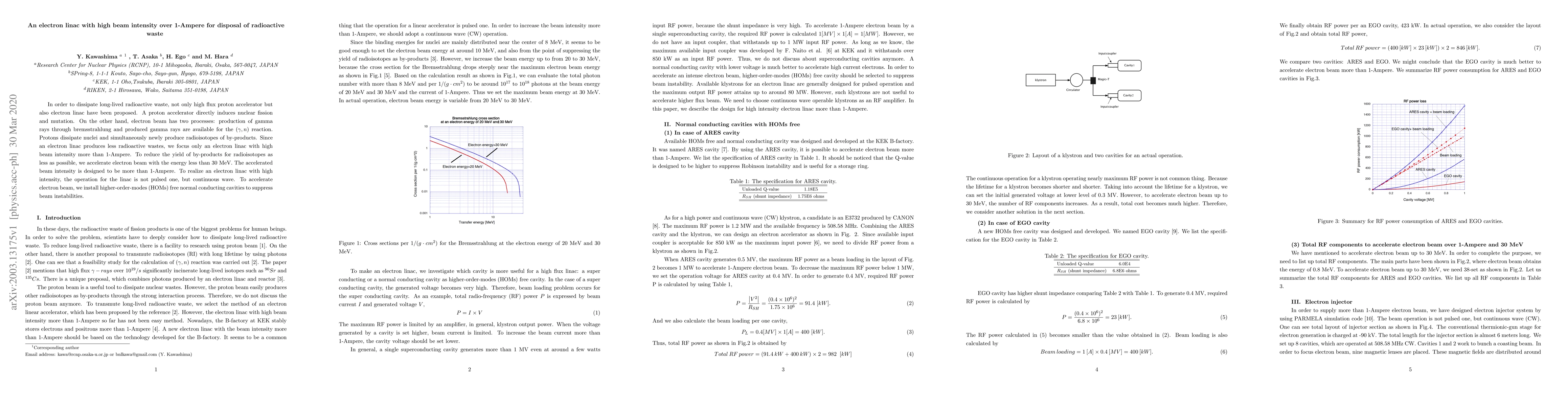 Researchers designed an electron linac with high beam intensity over 1-Ampere to safely dispose of long-lived radioactive waste by producing gamma rays through bremsstrahlung.