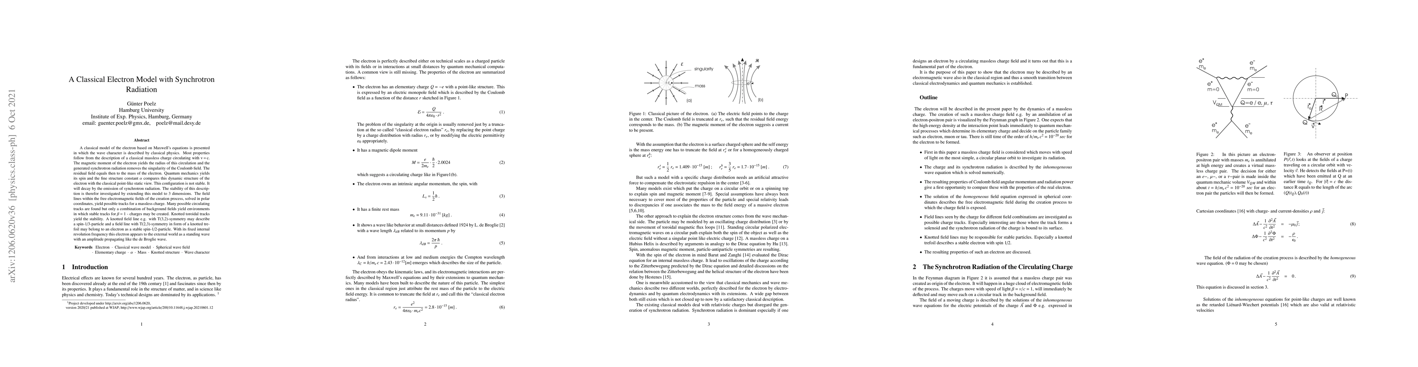 This paper proposes a classical electron model based on Maxwell's equations where a massless charge circulates at the speed of light, generating synchrotron radiation that resolves the Coulomb field singularity and creates electron mass. Stability is achieved through knotted toroidal tracks in electromagnetic fields, suggesting a dynamic structure that contrasts with the classical point-like electron.