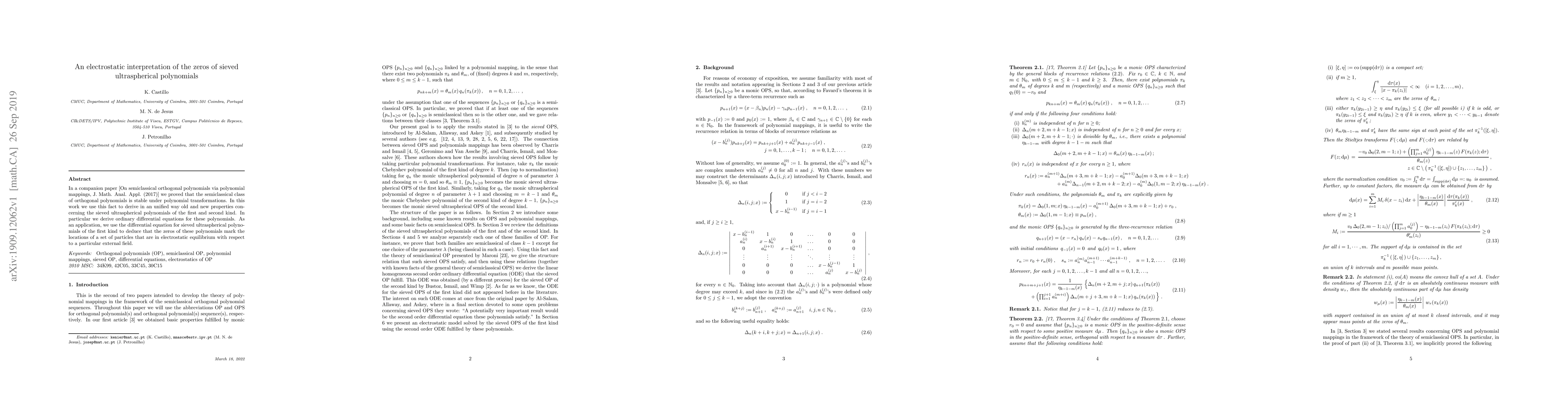 This research leverages the stability of semiclassical orthogonal polynomials under polynomial transformations to derive differential equations for sieved ultraspherical polynomials. It concludes that the zeros of these polynomials correspond to the electrostatic equilibrium positions of particles in a specific external field.