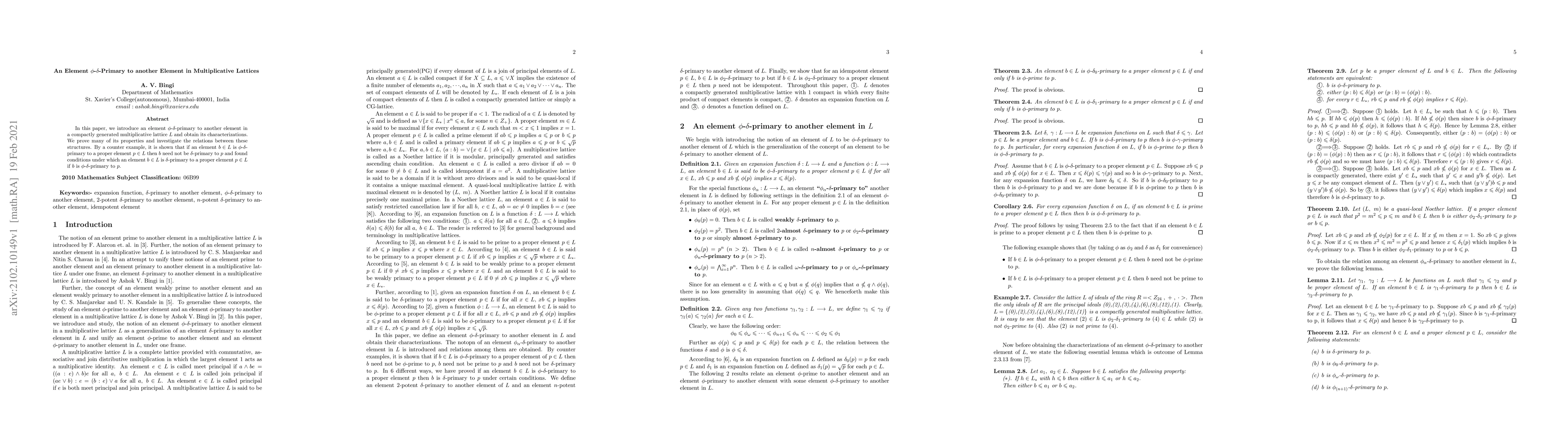 In this paper, we introduce an element $\phi$-$\delta$-primary to another element in a compactly generated multiplicative lattice $L$ and obtain its characterizations. We prove many of its properties and investigate the relations between these structures. By a counter example, it is shown that if an element $b\in L$ is $\phi$-$\delta$-primary to a proper element $p\in L$ then $b$ need not be $\delta$-primary to $p$ and found conditions under which an element $b\in L$ is $\delta$-primary to a proper element $p\in L$ if $b$ is $\phi$-$\delta$-primary to $p$.