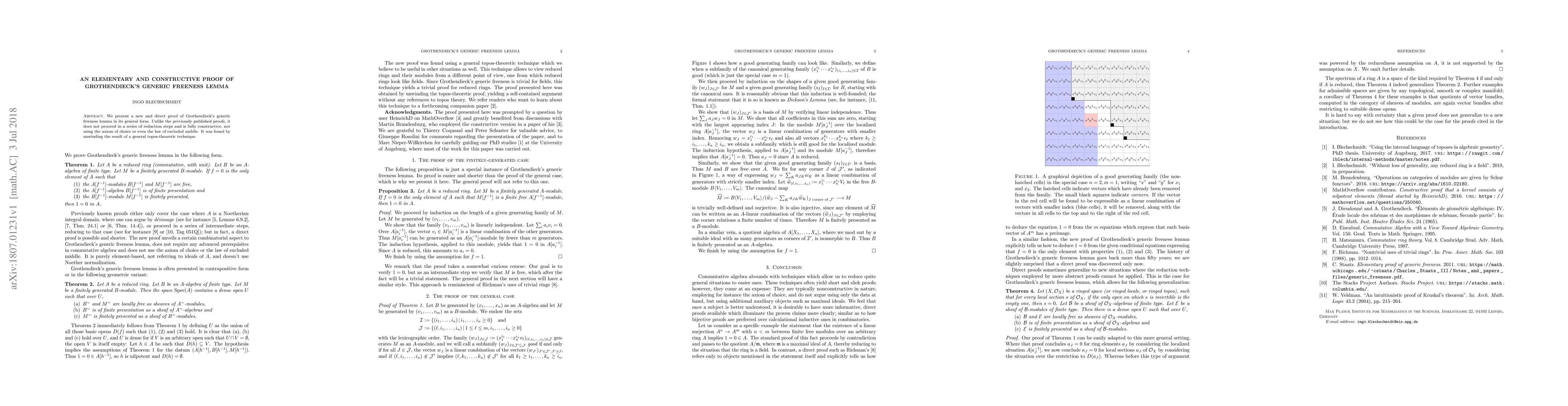 Summary: This paper provides a novel, direct, and constructive proof of Grothendieck's generic freeness lemma without relying on the axiom of choice or the law of excluded middle, achieved through a topos-theoretic technique. This contrasts with earlier proofs that utilized reduction steps.