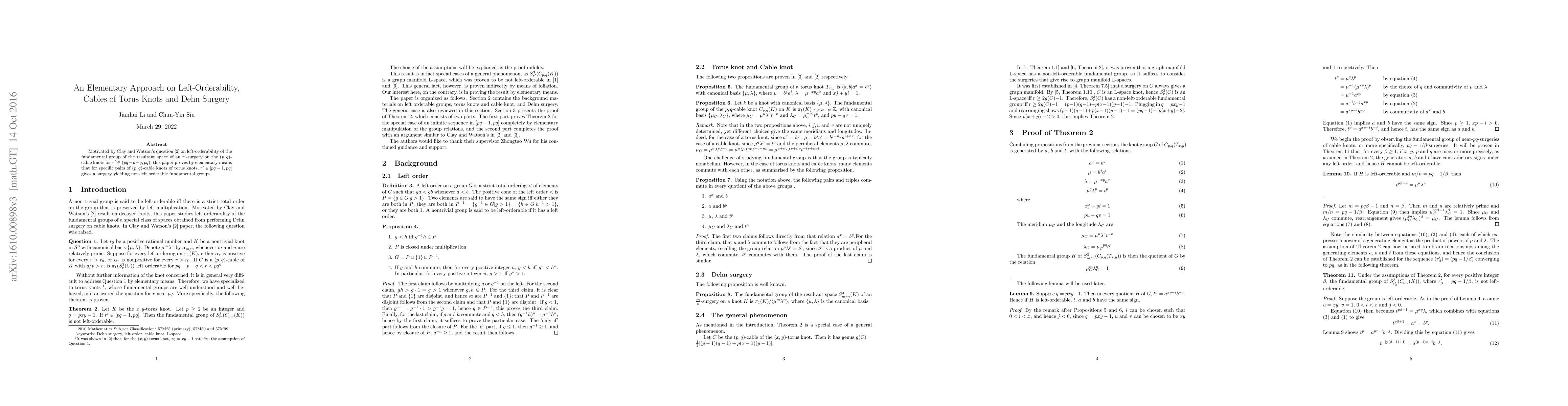This paper demonstrates, using elementary methods, that certain $(p,q)$-cable knots of torus knots, when subjected to $r' \in [pq-1,pq]$ Dehn surgery, result in non-left orderable fundamental groups. This resolves Clay and Watson's query regarding the left-orderability of such spaces.