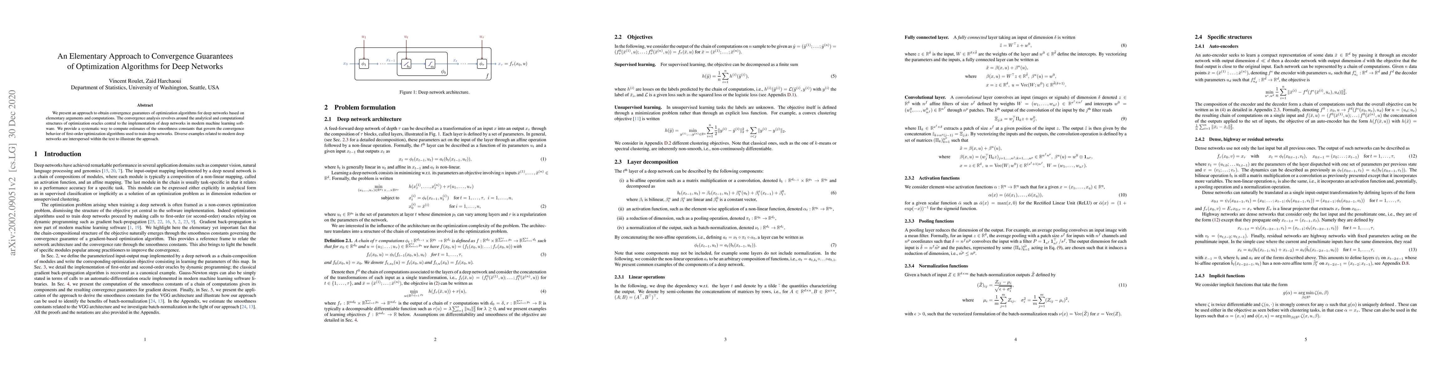 This paper offers an elementary method for obtaining convergence guarantees of optimization algorithms for deep networks, focusing on analytical and computational structures of optimization oracles. It systematically computes estimates of smoothness constants for first-order algorithms, illustrated through various modern deep network architectures.