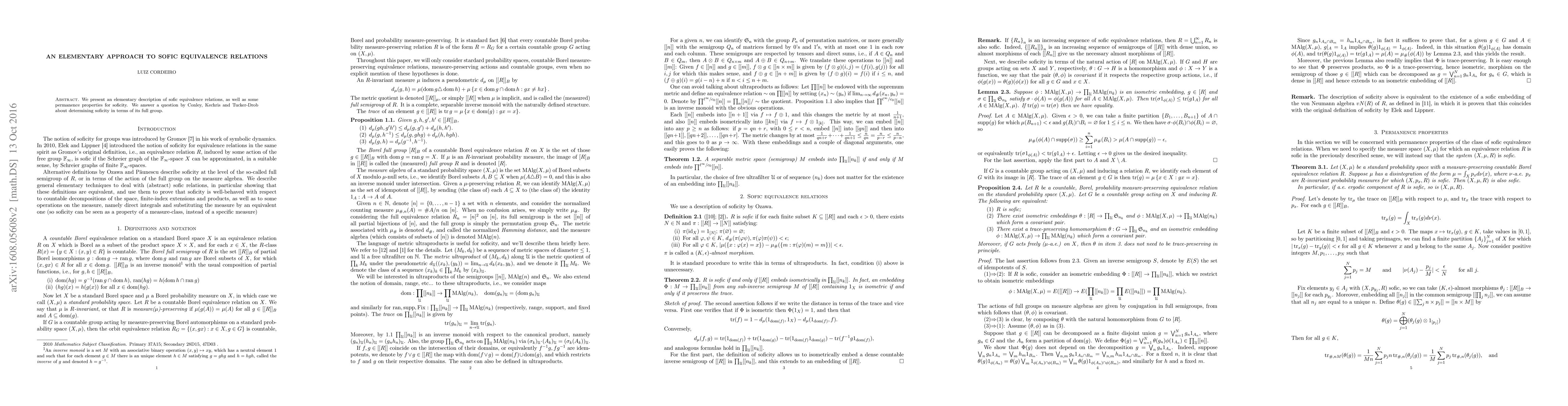 We present an elementary description of sofic equivalence relations, as well as some permanence properties for soficity. We answer a question by Conley, Kechris and Tucker-Drob of determining soficity in terms of the full group for aperiodic relations.