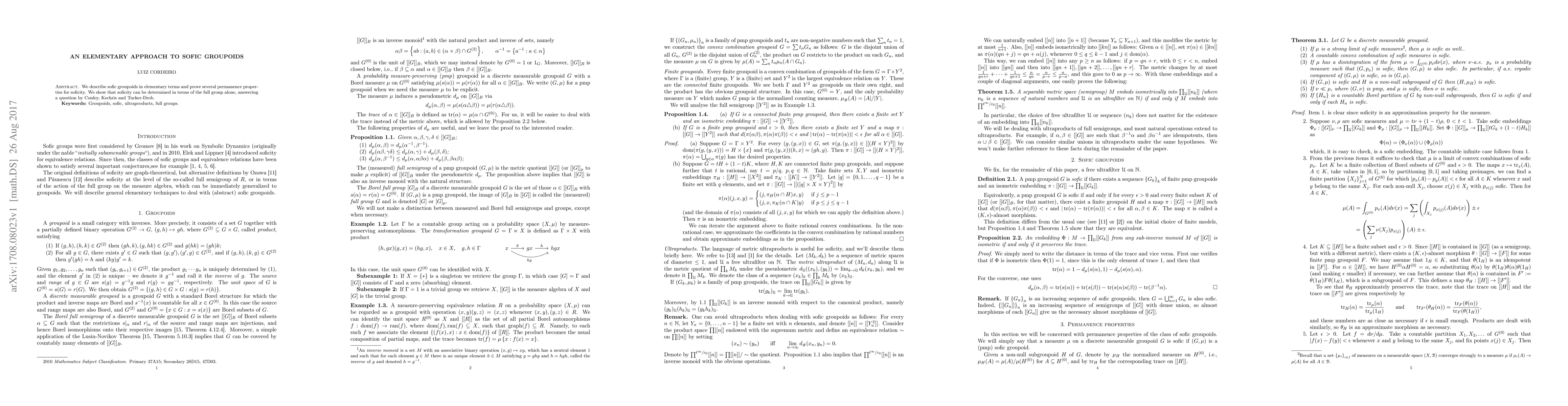 Summary: This paper provides an elementary description of sofic groupoids and establishes permanence properties for sofcity, demonstrating that sofcity can be determined solely by the full group, resolving a question posed by Conley, Kechris, and Tucker-Drob.
