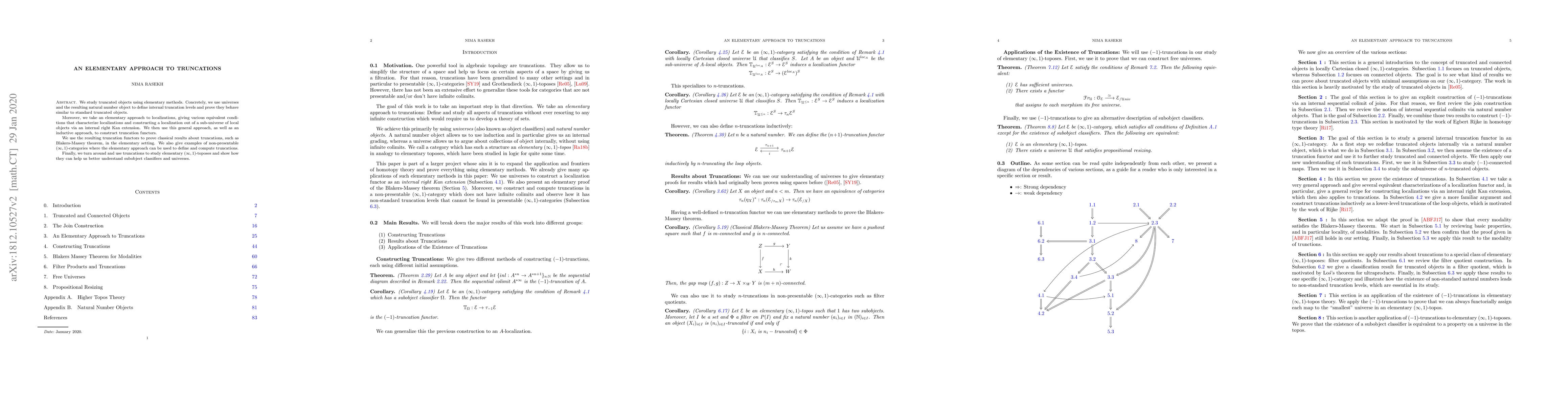 This paper explores truncated objects using elementary methods, defining internal truncation levels and proving their behavior akin to standard truncated objects. It constructs localizations and truncation functors, applies these to prove classical results, and demonstrates their utility in studying $(\infty, 1)$-toposes and subobject classifiers.
