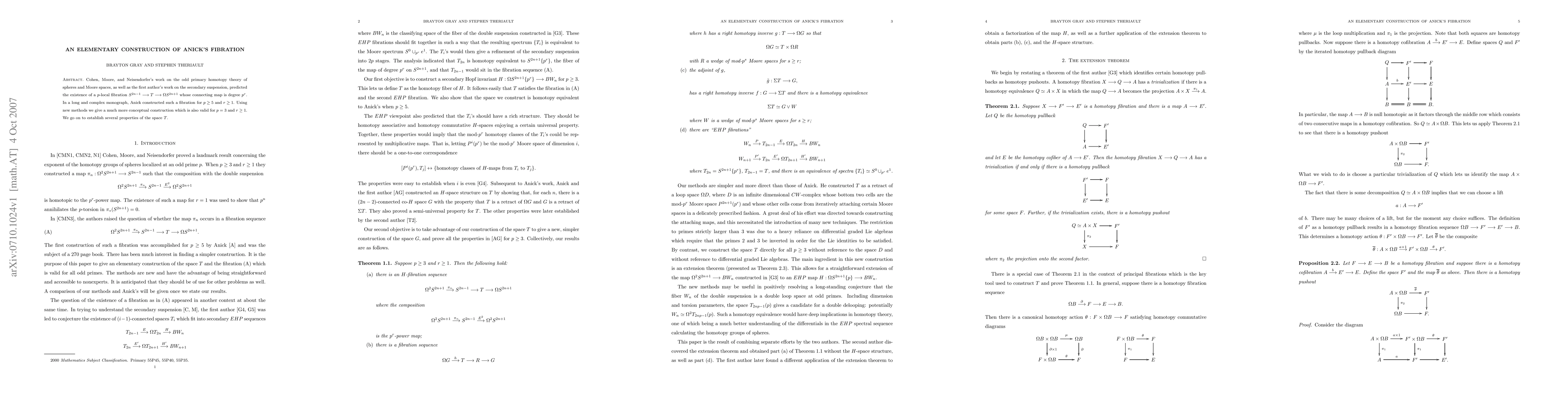 Cohen, Moore, and Neisendorfer's work on the odd primary homotopy theory of spheres and Moore spaces, as well as the first author's work on the secondary suspension, predicted the existence of a p-local fibration S^2n-1 --> T --> \Omega S^2n+1 whose connecting map is degree p^r. In a long and complex monograph, Anick constructed such a fibration for p>= 5 and r>= 1. Using new methods we give a much more conceptual construction which is also valid for p=3 and r>= 1. We go on to establish several properties of the space T.