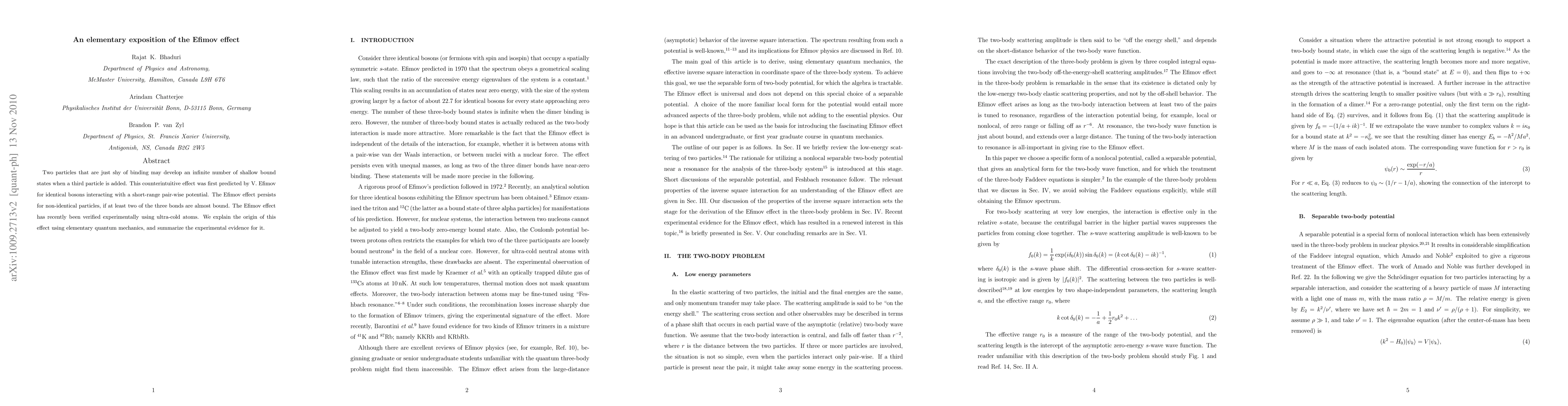 This paper explains the Efimov effect, a counterintuitive quantum mechanical phenomenon where adding a third particle to a pair just short of binding leads to an infinite number of shallow bound states. It provides a simple derivation and summarizes experimental evidence using ultra-cold atoms, emphasizing elementary quantum mechanics.