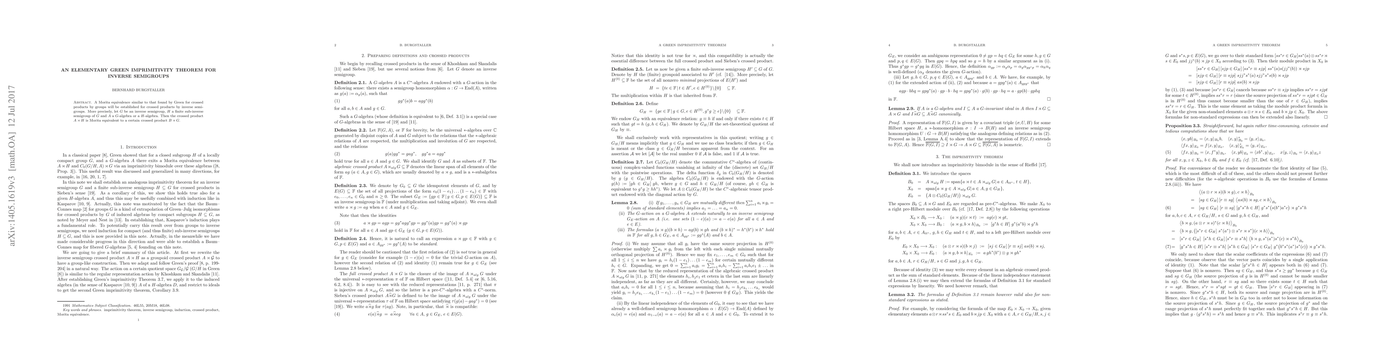 Summary: This paper establishes a Morita equivalence for crossed products by inverse semigroups analogous to Green's theorem for groups, showing that $A \rtimes H$ is Morita equivalent to $B \rtimes G$ for certain $G$-algebras and $H$-algebras.
