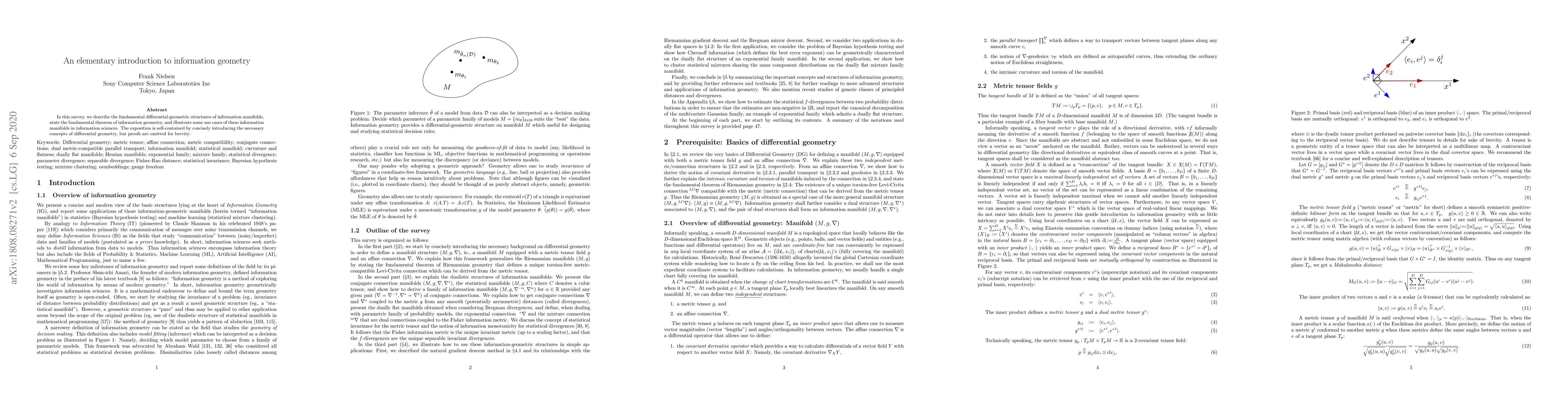 In this survey, we describe the fundamental differential-geometric structures of information manifolds, state the fundamental theorem of information geometry, and illustrate some use cases of these information manifolds in information sciences. The exposition is self-contained by concisely introducing the necessary concepts of differential geometry, but proofs are omitted for brevity.