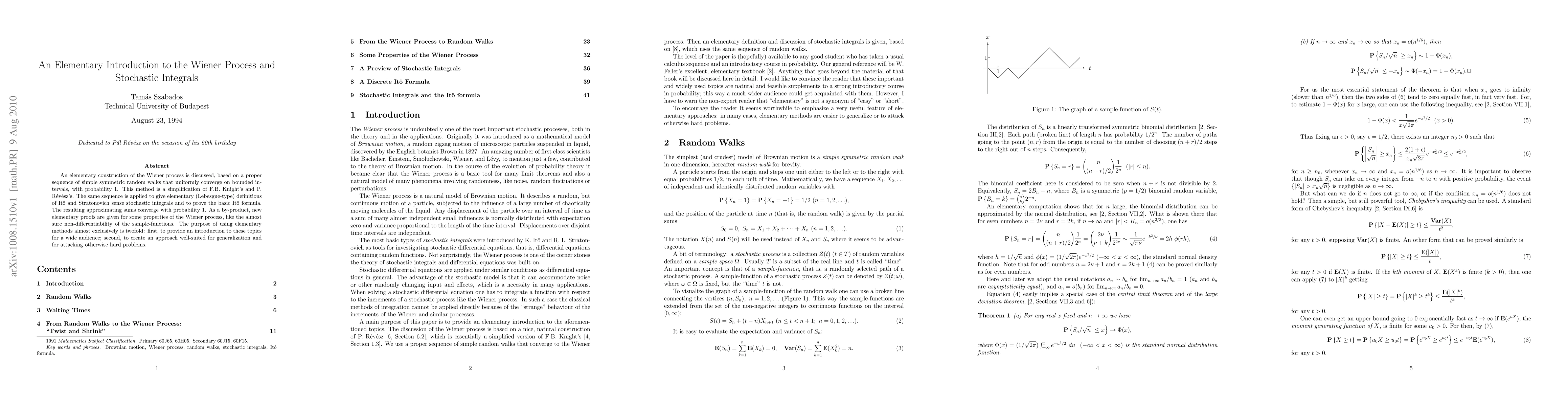 This paper presents an elementary construction of the Wiener process using simple symmetric random walks, which converges uniformly with probability 1. It also introduces Itô and Stratonovich stochastic integrals through elementary definitions and proves the Itô formula, aiming to make these advanced topics accessible to a broad audience.