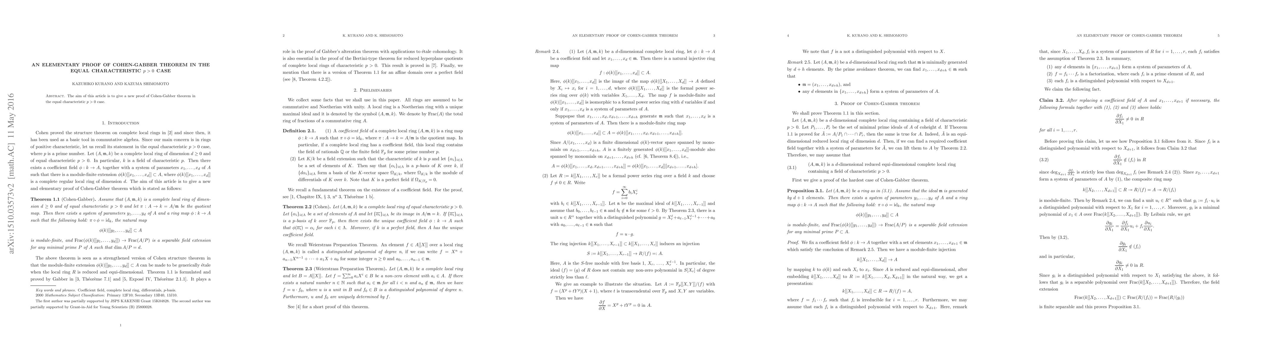 Summary: This paper presents a novel elementary proof of the Cohen-Gabber theorem specifically for the case where the characteristic of the field is a prime number greater than zero. The new approach aims to simplify the existing complex proof methods.
