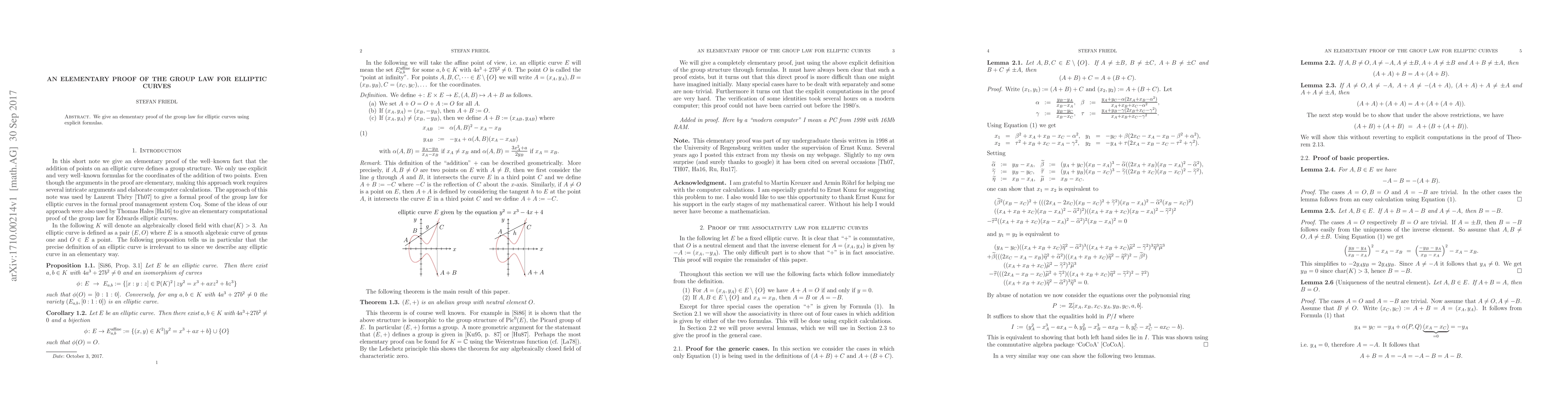 Summary: This paper presents a straightforward proof of the group law for elliptic curves utilizing clear, explicit formulas, avoiding complex mathematical machinery.