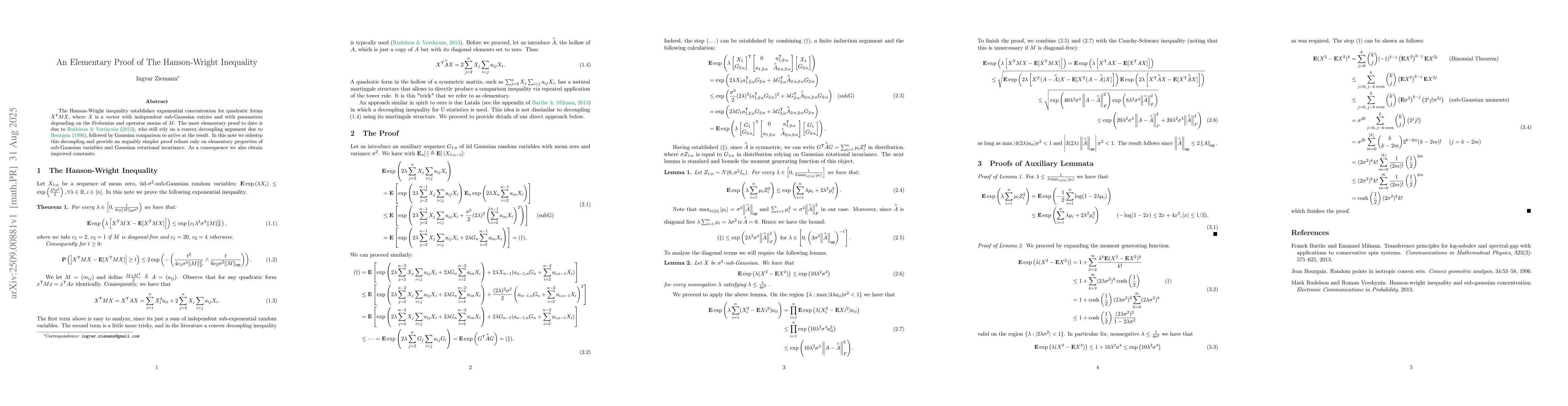 The Hanson-Wright inequality establishes exponential concentration for quadratic forms $X^T M X$, where $X$ is a vector with independent sub-Gaussian entries and with parameters depending on the Frobenius and operator norms of $M$. The most elementary proof to date is due to Rudelson & Vershinyn, who still rely on a convex decoupling argument due to Bourgain, followed by Gaussian comparison to arrive at the result. In this note we sidestep this decoupling and provide an arguably simpler proof reliant only on elementary properties of sub-Gaussian variables and Gaussian rotational invariance. As a consequence we also obtain improved constants.