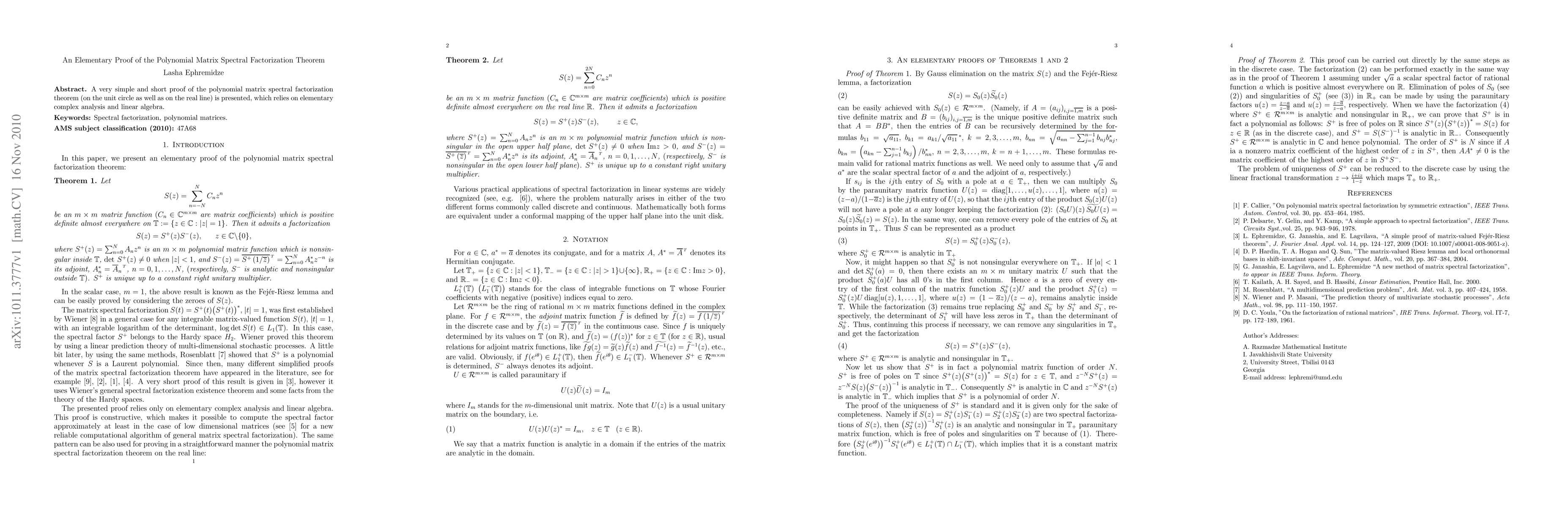Summary: This paper presents a straightforward proof of the polynomial matrix spectral factorization theorem using basic principles from complex analysis and linear algebra. The proof covers factorization on both the unit circle and the real line.